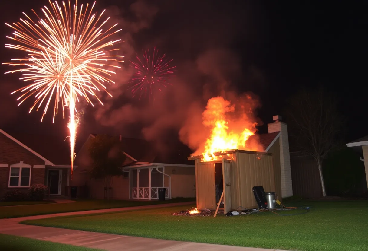 A fireworks-related incident in Newberry, SC resulted in three injuries, including a 15-year-old who suffered severe trauma. Firefighters arrived to find a shed ablaze and fireworks still discharging. Emergency services transported the injured to local hospitals, with ongoing investigations by law enforcement emphasizing the need for fireworks safety amid the upcoming holiday.