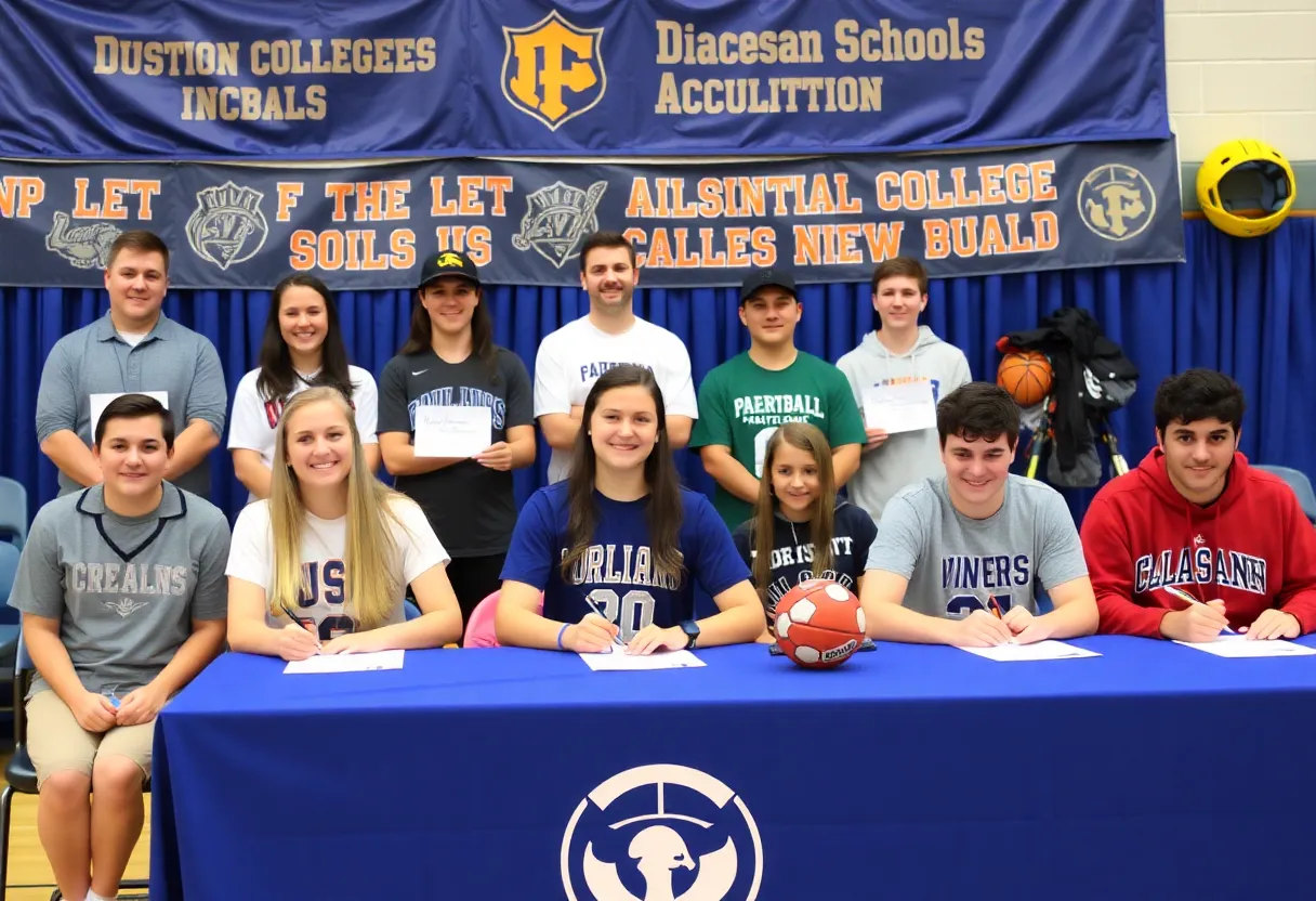Virginia – A significant event took place recently as high school athletes from four diocesan schools in Virginia signed agreements to play sports at various colleges across the United States. This event highlights the achievements of these students, marking a major step in their athletic careers. The signing ceremony showcased athletes who are committed to continuing their sports journey from Fairfax to Florida and beyond.